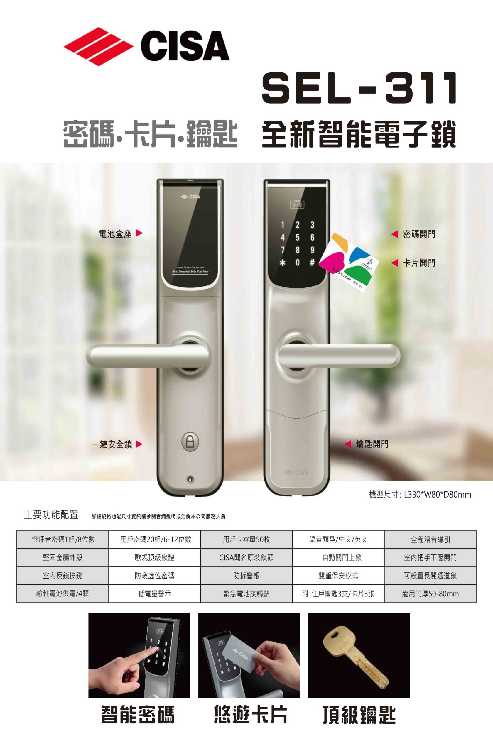 [CISA]SEL-311全新智能電子鎖 分類: 五金系列|智慧電子鎖 描述 描述 相關商品 快速預覽 快速預覽 五金系列|智慧電子鎖35436L-COFFEE咖啡 快速預覽 快速預覽 五金系列|智慧電子鎖JW-963L-4雙鎖-ST鈦金 快速預覽 快速預覽 五金系列|智慧電子鎖[WEL-3900] 感應式門鎖